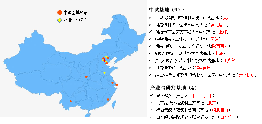 裝配式建筑產(chǎn)業(yè)基地與國內(nèi)知名生產(chǎn)制造企業(yè)合作,先后建立了9個中試基地和4家生產(chǎn)研發(fā)基地。